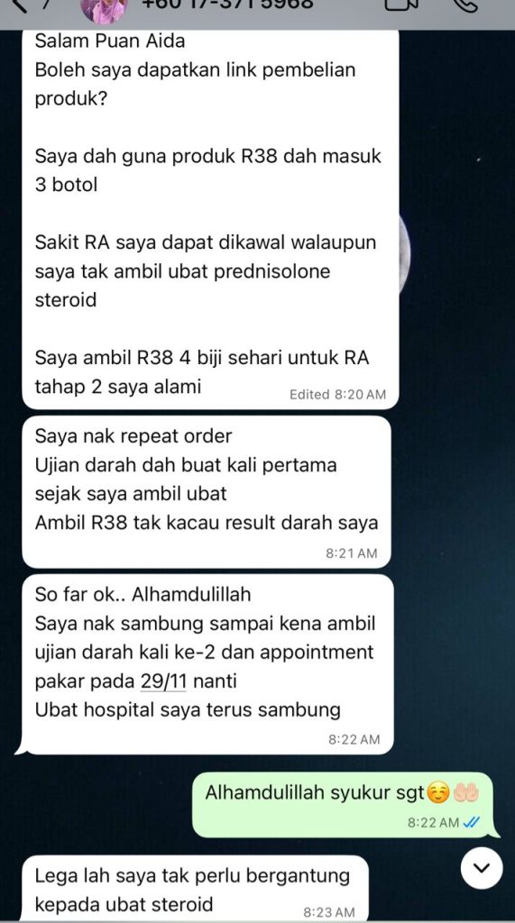 Jangan Risau, dengan kapsul R38, In Shaa Allah masalah sendi & gout anda beransur pulih…